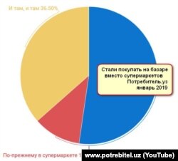 В ходе соцопроса, проведенного группой специалистов «Потребитель.уз» среди узбекских потребителей, 52 процента респондентов сообщили, что прекратили покупать продукты в супермаркетах и начали закупаться на местных рынках. Сообщается, что после введения в Узбекистане нового порядка НДС прилавки продуктовых магазинов опустели, а цены на товары заметно выросли.