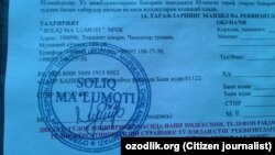 «Мы пишем в редакцию «Озодлика» от имени предпринимателей Ташкентской области. Наши налоговики продолжают «просить» предпринимателей подписаться на газету «Солик инфор». Налоговики говорят, что такой приказ поступил «сверху». Однако имя этого чиновника они не называют. Теперь представьте, что будет с предпринимателем, который откажет налоговикам в их «просьбе». Самое интересное в том, что в Узбекистане минимальный размер заработной платы составляет 202 730 сумов (около 23 долларов). А стоимость подписки на данное издание составляет почти 50 тысяч сумов (5 долларов). Кажется, что к стоимости принудительной подписки они включили и стоимость совести...»